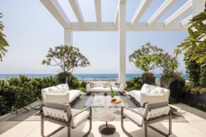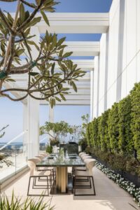 חומרים: ריצוף וחיפוי באבן טבעית במידות גדולות – בחללי הפנים והחוץ, להמשכיות אדריכלית והרמוניה עיצובית.