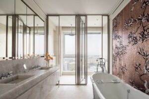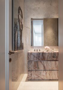 הפרויקט מציג את השימוש ב-אבן טבעית וב-פסיפסי Sicis ייחודיים כחומרי חיפוי וריצוף אידיאליים לעיצוב דירות יוקרה, חדרי רחצה ובריכות שחייה.